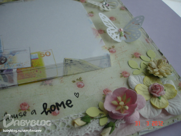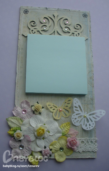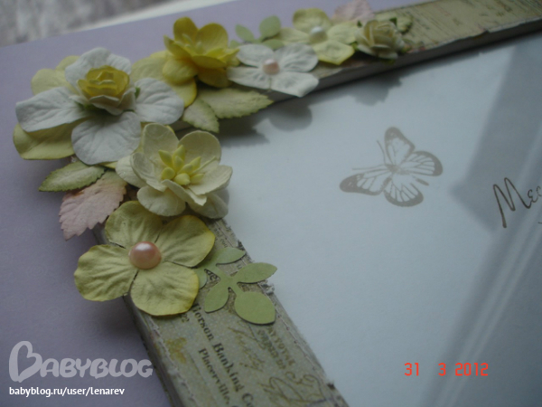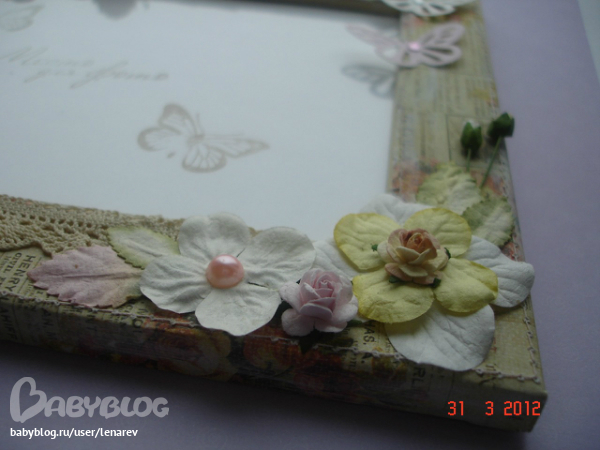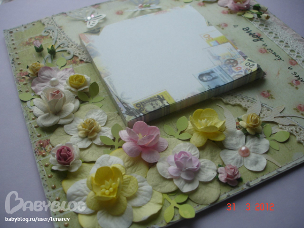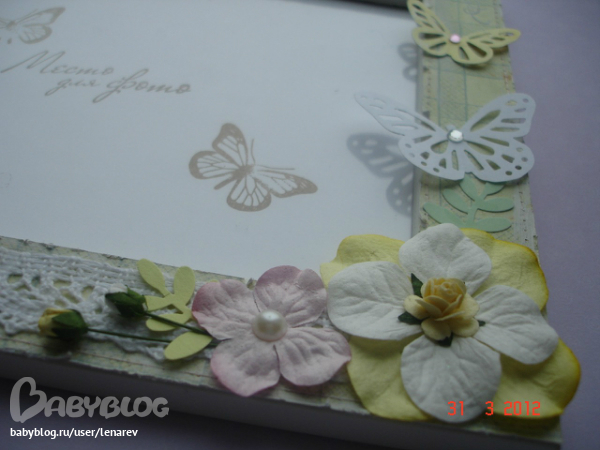 СкрапбукингРабота одной ночи! Ничего примечательного - бумага Примы, чипборд "Елены", цветы Тайланд и Англия, дырокольные листики и бабочки, кружево, полужемчуг и стразы.