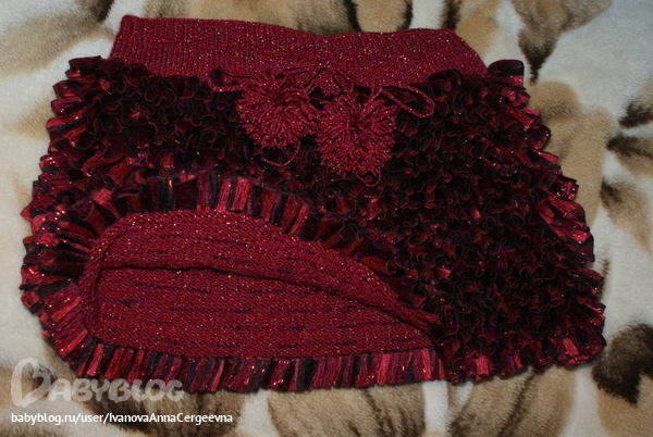 Спасибо! Я вязала 4 ряда основной пряжей, а на пятом ряду ввязывала ленточную пряжу! Набрала 180 петель основной пряжи на круговые спицы 2,5мм (нитки были тонкие). И вязала постепенно убавляя петли. Как такового описания нет, на глаз делала, переодически примеряла на дочу!