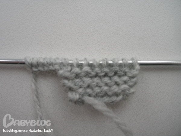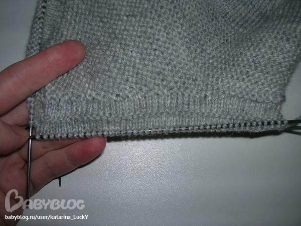 - вяжем 4р. лицевой гладью, 1р.изнаночный (это будет линия сгиба) и 4 р. лицевой гладью: