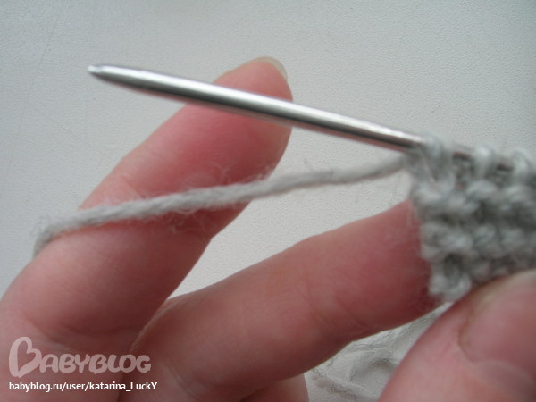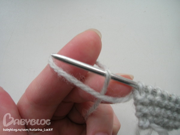 2. рабочая нить через указательный палец - делаем петлю, одеваем ее на спицу