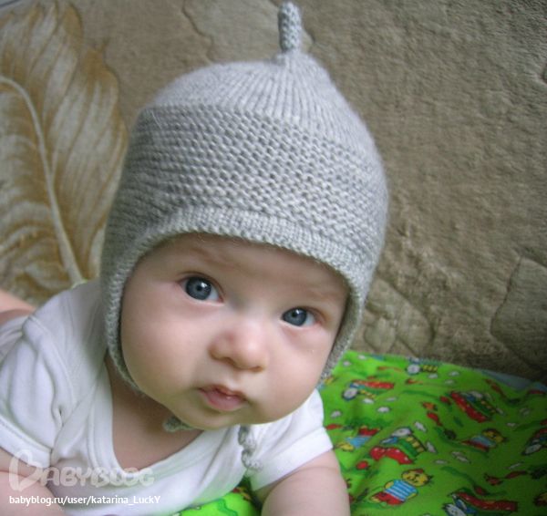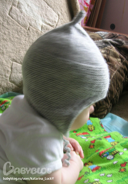 связала немного побольше, чтобы еще и осенью походить. моделька отличная, если завязки завязать, все закрыто, ничего нигде не поддувает. главное-антенка)))))