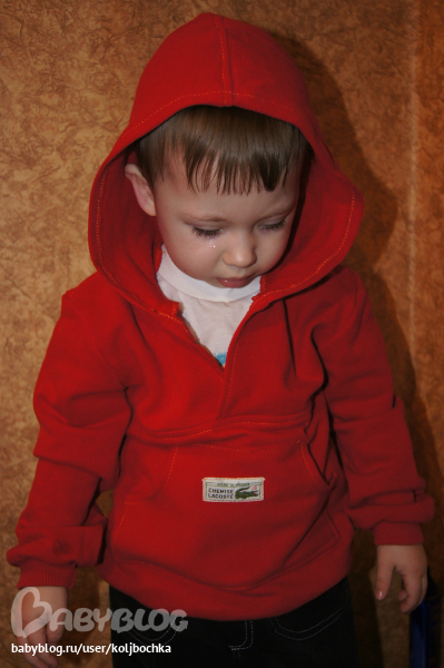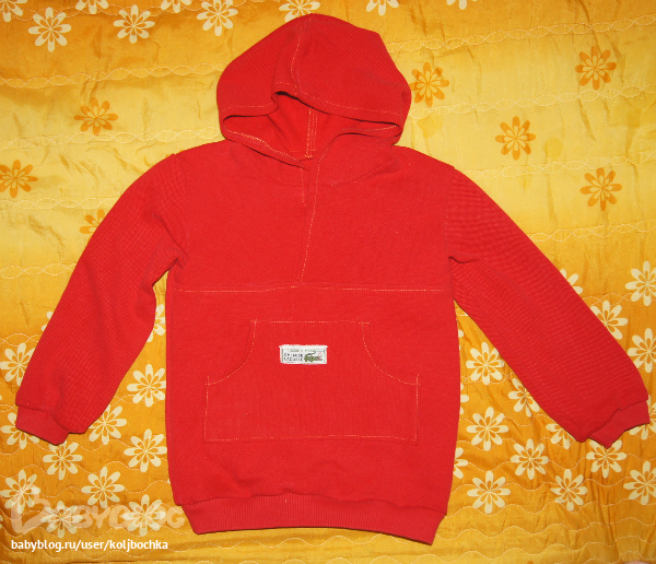 У папы нашего была кофта от Lacoste.Пролежала она 3 года,он так ни разу и не одел,я взяла и разрезала,чего ей лежать зря?Получилась толстовка Максу.