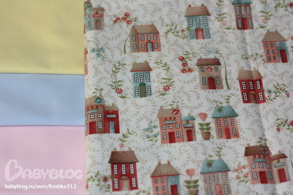 вот ета ткань с домиками хочу чтоб фигурировала..в дополнение вот ети однотонные и другие есть...и думаю может надо блоки домиками сделать или чтот типа того?может подскажешь?))