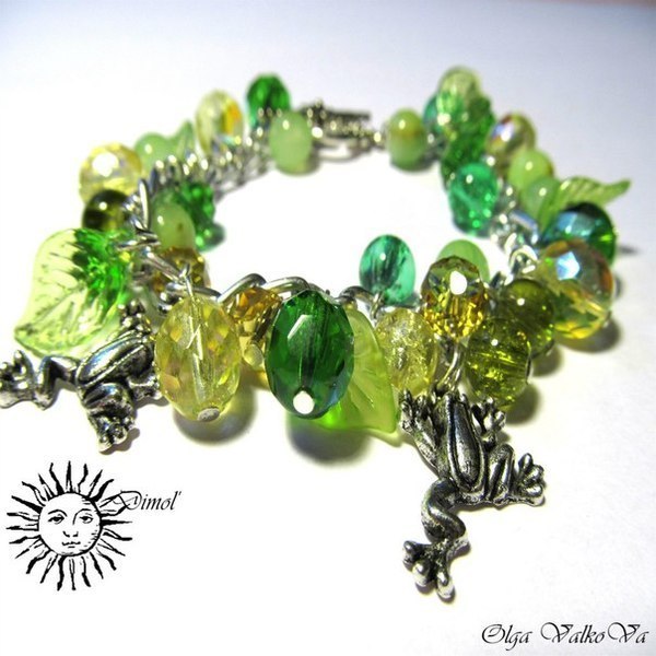 Бусины стеклянные, подвески лягушки, тогл, цепь металлическая, узорные гвоздики, фурнитура