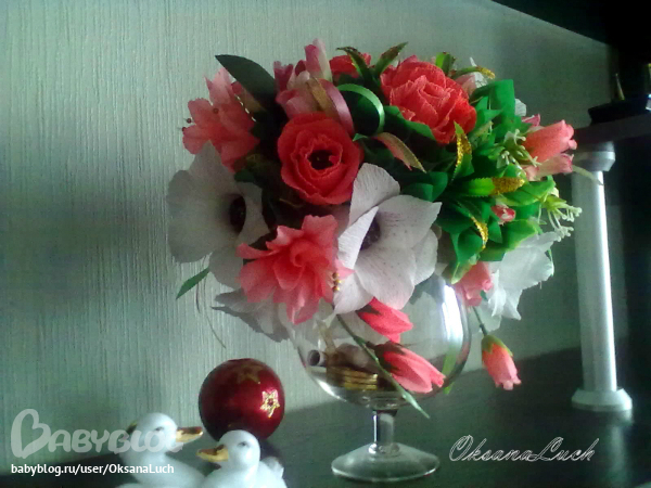 Я тоже все хочу попробовать собрать букет на вазе, вот только не знаю как к нему подступиться. Нигде не могу найти МК как делать каскад свисающих бутонов. Может быть, когда у тебя будет время, ты мне расскажешь? Можно в личку. Меня интересует: