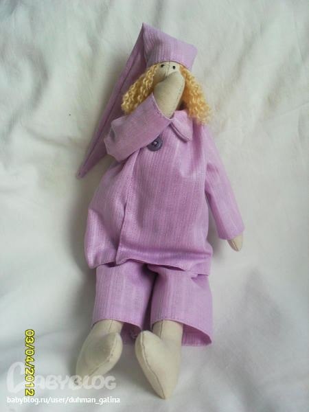 Долго шила сплюха..точнее самого сплюха быстро..а вот пижамка-а именно рубашечка.Чуть с ума не сошла..и то вот рукава длинные....А так мне понравилось его шить)))Давно хотела сшить домой нам такого человечка который будет охранять наш сон))))