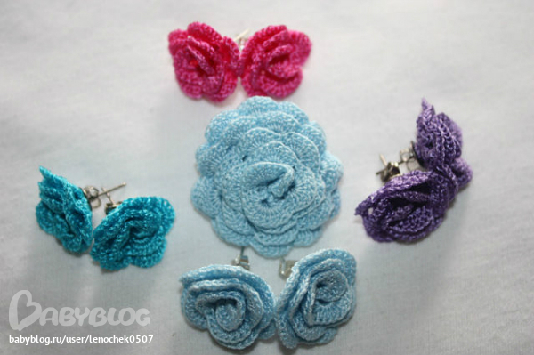 Лена,а как вы вязали маленькие розочки,как большие вязали я поняла,хочу себе связать такие серьги.