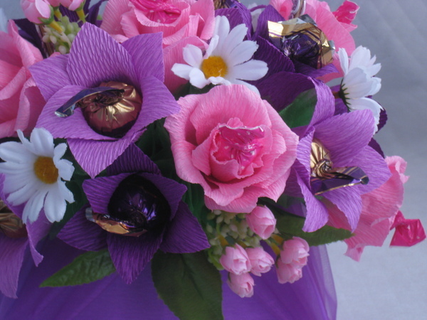 люблю фиолетово-сиреневую гамму... и ромашки и маленькие розовые цветочки всё в тему!!! кстати что за маленькие розовые цветочки???