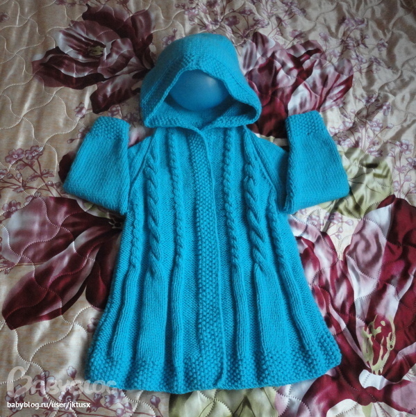а ты не бойся, косяч, потом исправишся, зато руку набьешь. Я его вообще на глаз вязала, а капюшон получился со второго раза))))))) вот еще отпарю, пуговки пришью и в путь. подклад решила не делать, толстовато будет