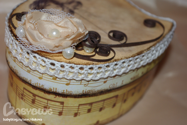 Света....как же мне понравилось: ну очень нравятся работы с дополнительными элементами...была поражена, увидев квиллинг (вроде это он). И бусинки и цветочек ( прям почти родной - у меня на лампе почти такой же ..ля ля ля) ... Свет ну очень необычно и оригинально!!!И как нежненько почпокано..мммм... а внутри что?