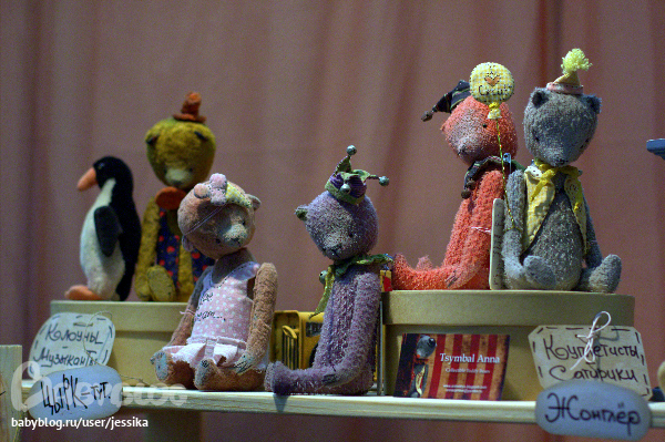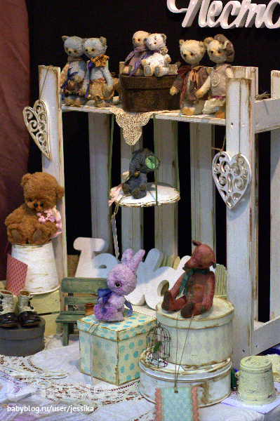 Какие вы молодцы что все фотографировали!!! Я была в первый день, народу столько что я еле к прилавкам то попадала, не то что фотографировать!!! На 10 фотке сверху бегемотики ежи и маааленький мишка на заднем плане- работы одной замечательной мастерицы. Живут у меня дома)))