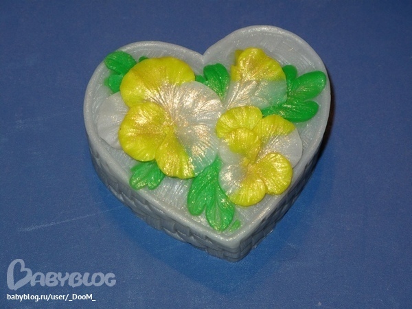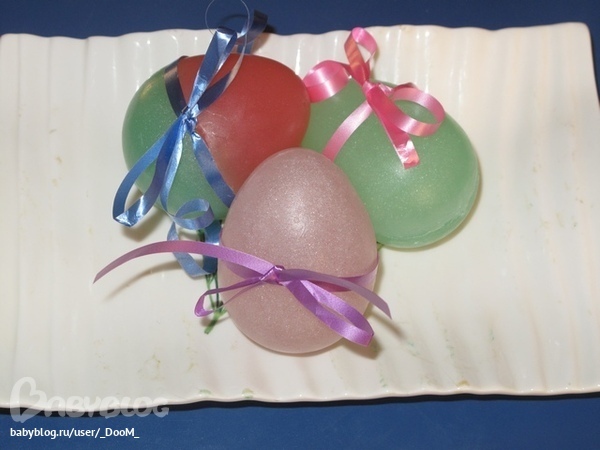 Яички и куличики хорошенькие! А вот мылко на второй картинке конечно оригинально залито, но мне больше нравится когда фон одним цветом, а цветочки сверху другим цветом... Ну это моё мнение =) И, когда я мылко из формочки достаю я краешки сзади подшлифовываю, иногда даже ножичком, чтоб неровностей не было, у Вас на втором фото их очень хорошо видно.. Надеюсь ничем не обидела =) Успехов Вам!