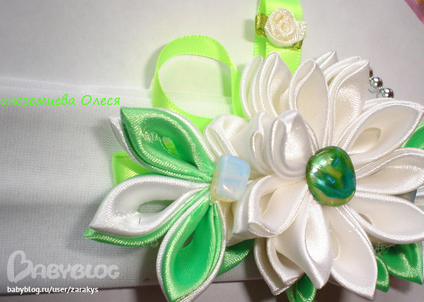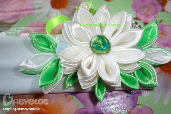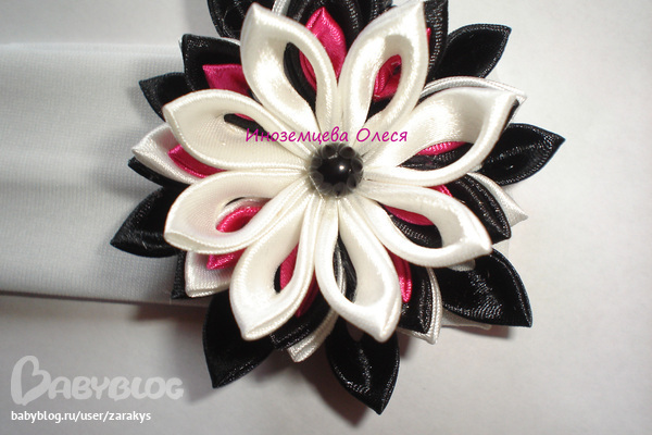 очень очень красивенько!!!! ну скажите, вы канзаши сначала на основу клеите, а потом к ленте? или сразу на ленту?