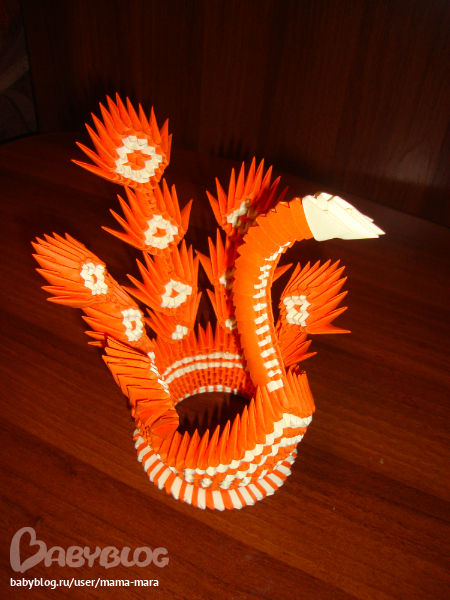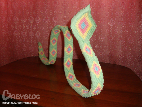 Спасибо. Я шикарного огненного дракона делала, но на клей не сожала, потом пришла сестра и неудачно посмотрела, неделя работы на смарку. Потом из обломков получилась Жар-птица. Но змея тоже без клея. Поставила повыше,чиоб недай бог.....
