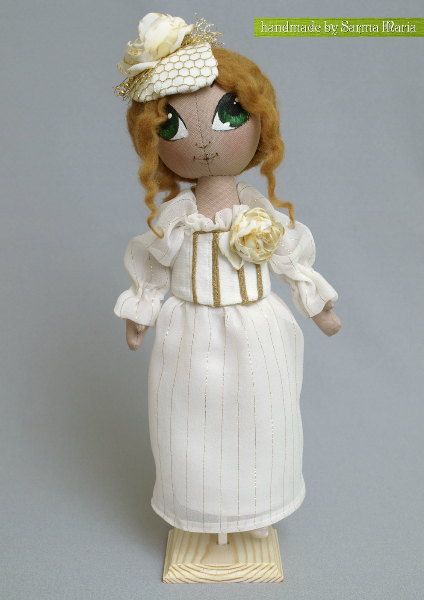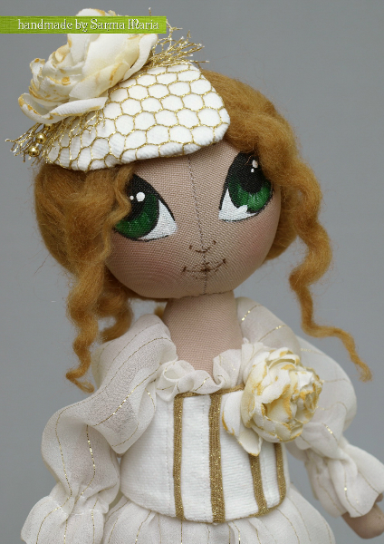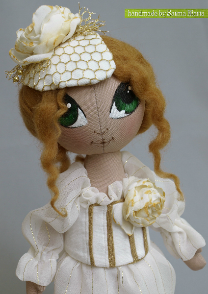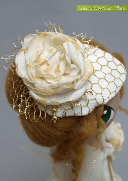Все началось с шляпки, а точнее с красивой золотой сеточки на которую я недавно попала в магазине. Образ и форма шляпки пришли в голову сразу, а за ними родилась вот такая милая и нежная девушка.