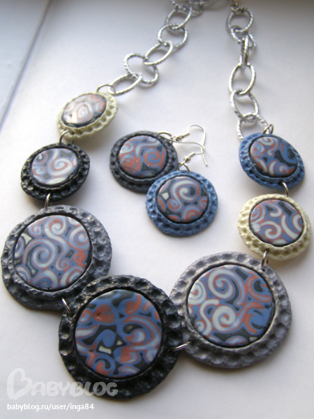 2. Колье+сережки. Мокуме. Намучалась, пока "придумала" эти рамочки - сперва сделала ровное - не то, сделала вмятины - мало, сделала бортики + вмятины + общую текстуру и на этом уже решила остановиться. Колье массивное - мне кажется, что если одевать с сережками - уже слишком.....