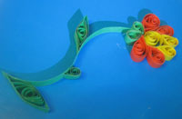 Мы пока вместе с дочкой только в самом начала обучения квиллингу. В основном по инету и методом проб и ошибок. И самая большая сложность, с которой мы на данный момент столкнулись: как приклеивать детальки к основе? Ведь бумага стоит ребром, очень тоненько клей наносишь - не приклеивается, если побольше - клей заметно и выглядит неаккуратно.И уж совсем непонятно, каким макаром держатся на основе такие полоски, как, например, стебелек у этого цветочка: