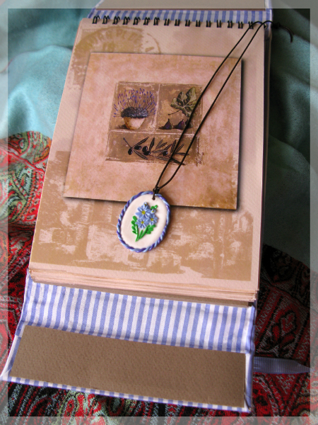 Блокнот ручной работы, формат А5, блок на пружине, листы тонированы (первый раз тонировала бумагу, процесс довольно долгий), часть листов пролинованы, часть нет, украшены вензелем хозяйки блокнота. Обложка текстильная, урашена вышивкой, кружевои и бисером. Имеется закладка (кожаный шнур и подвеска из полимерной глины). Разделители блоков блокнота выполнены из пленки с нанесенной на нее рисунком в тематике стиля блокнота. При создании коллажей для разделителей использовались картины французской художницы Вероник Дидье-Лоран.