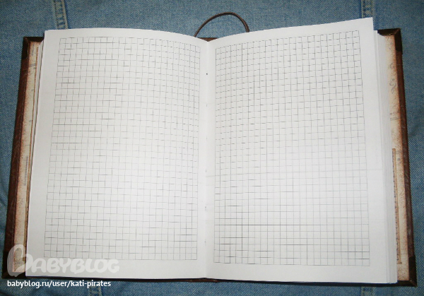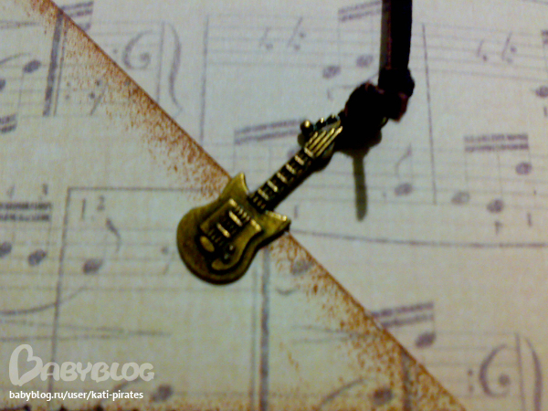Блокнот сделан с нуля, 130 листов в клеточку. Твердая обложка, сверху - искусственная кожа. Вручную сплетенный каптал, закладка с подвеской - гитарой. На форзацах кармашки)
