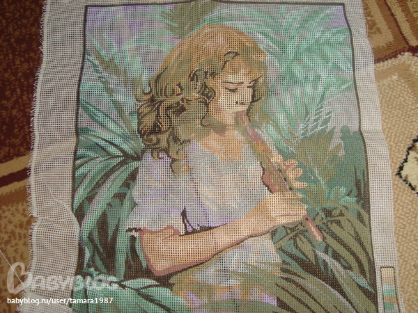 я купила себе подобную канву, не понравилась, ,рисунок сильно смещен, моя работа встала когда глаза девочке вышивать стала, а осталось чуть чуть