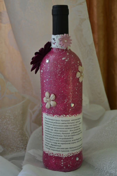 Вик, моя слабость цветочки, бусинки, стразики, конечно я не пройду мимо))) Милая, женственная бутылочка)