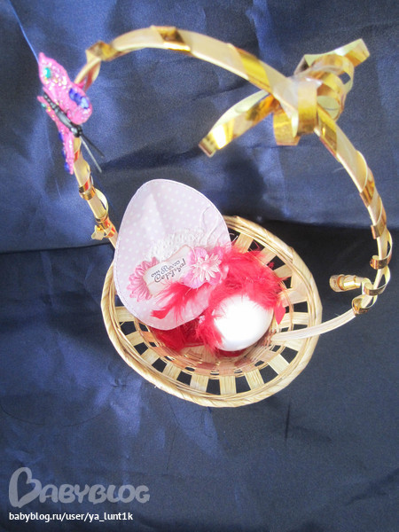 А еще корзинку,в которой будут лежать яички=)К сожалению,я их еще не разукрасила.Для примера положила одно=)