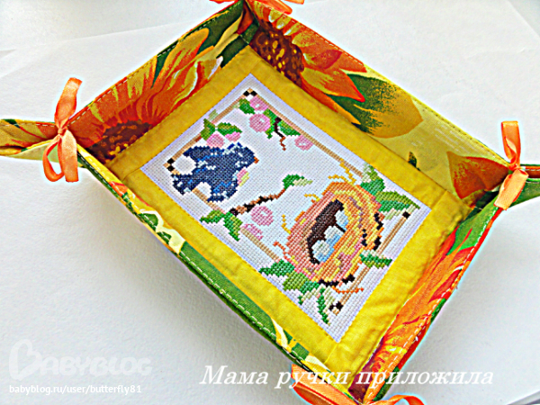 Шитье одежды, выкройки, ремонт одежды, шторы, швейные машины (уже приобретенные)Вышивка лежала давно, не знала куда ее пристроить. Сшить конфетницу навеял праздник Пасха, весна...