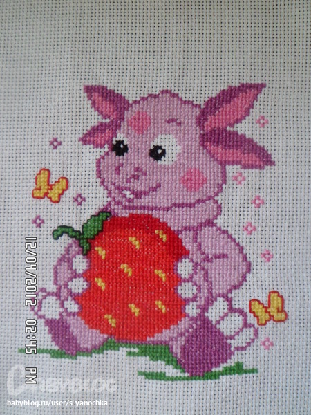 миленький лунтик) но главное правило в вышивании крестиком все верхние стежки должны смотреть в одну сторону:) удачи!