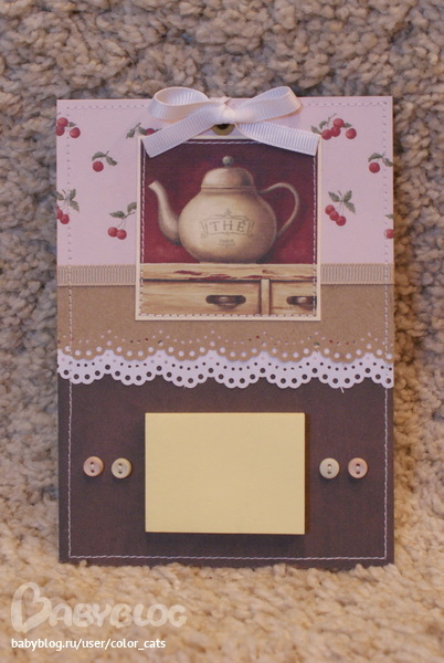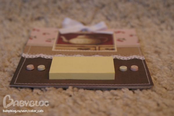 А это обещенный СЮРПРИЗ - магнитное украшение на холодильник с блоком для записей (вечно ведь что-то да надо быстро записать))). Кстати, проверяла на своем холодильнике - держится отлично, никуда не съезжает))))
