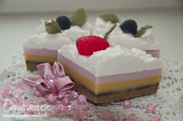 Тортик.Состав: основа, касторовое масло, абрикосовых косточек, зародышей пшеницы, масло ши, глицерин, витамин Е, кофе, отдушки: ванильная карамель, лесные ягоды, кофе, земляника.