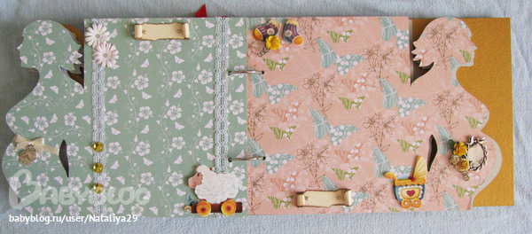 Альбом в целом мне очень понравился, и бумага, и ее сочетание, и всякие украшалки хорошо расставлены, но я не поняла одно, я наверно стереотипно мыслю, но альбом ведь про ожидание чуда? а зачем тогда в нем соски, овечки и т.д.?