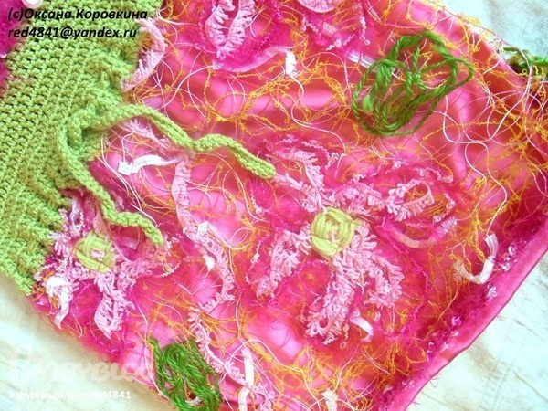 шарфик тоже обалденно будет...когда растворился этот флизелин...и вот это мягкое...чудесное полотно в руках..такое невесомое...сказочно...конечно розовый подклад забил всю красоту..но светлых тоновне было в магазине...а ОООЧЕНЬ хотелось сотворить)))я давно флизелин купила...пишут что можно газету использовать еще...но ,кнечно,под газетой не будет видно что да как...всё равно с флизелином удобнее думаю..он просвечивается...когда наметываешь или простегиваешь всё-таки удобнее