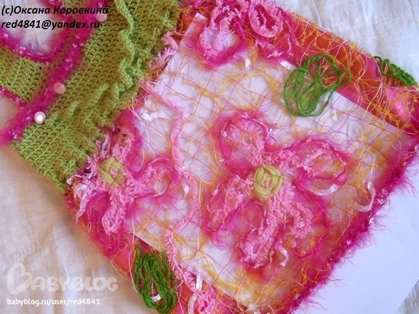 здорово получилось. давно руки чешутся, думала шарфик сделать, но сарафан интереснее идея. вы водорастворимый флизелин брали?