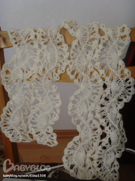Красота! Такой нежный и воздушный шарф получился! Я и не знала, что на вилке такое получается...