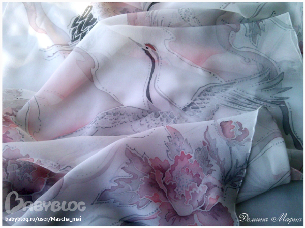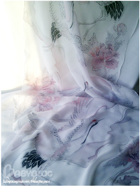 Люблю рисовать на шифоне, хоть это и сложнее, чем на других видах шелка. Но мне нравится результат, воздушность и легкость шифона. Изделия из шифона получаются такие нежные.
