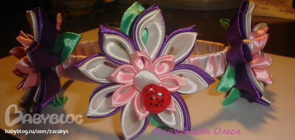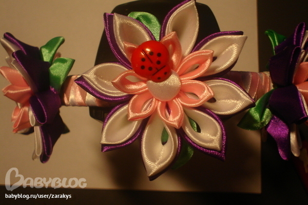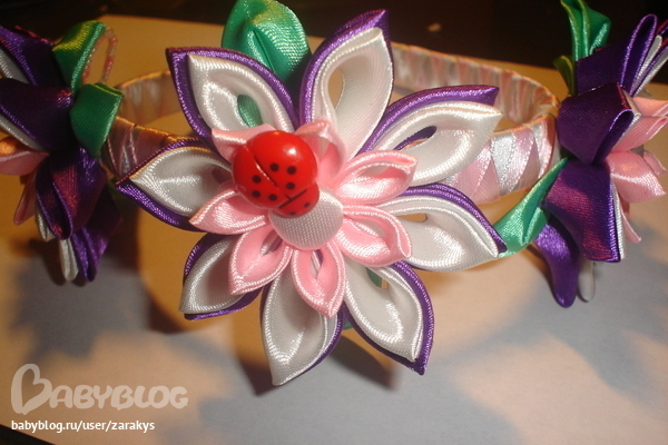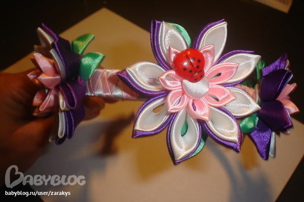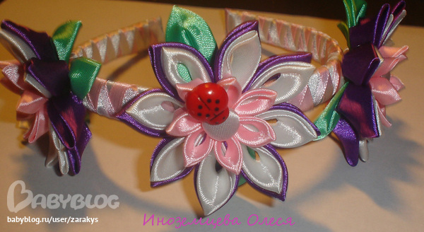 )))))))Надь дело в том,что там крепление на резинках,их можно цветочки снимать и одевать хоть на приколки ,хоть на новые ободки,тем и удобно