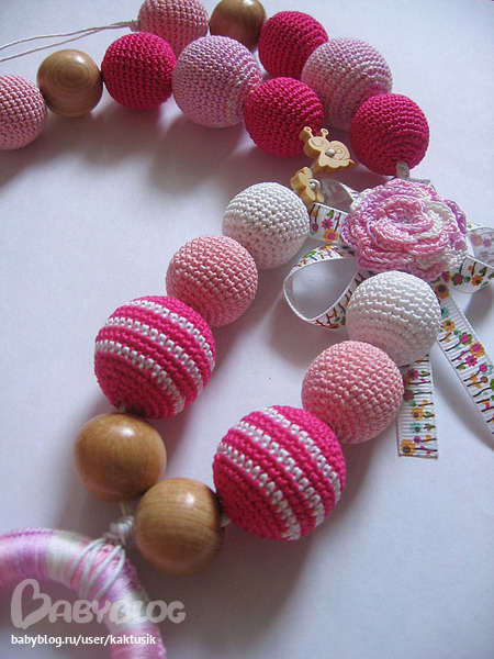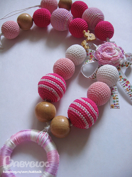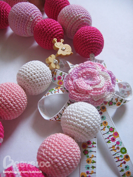 Ленточка в полне подходит, бусики же для мамочки. Более веселенько смотрится, а если бы в цвет была, то было бы уже более нежно. Думаю, оба варианта хорошо. Каждый по своему!