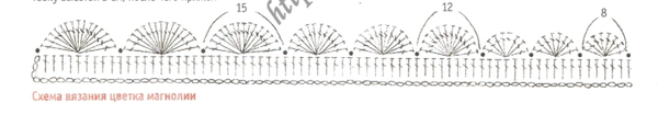 Вот что-то похожее. в середине полосочка мне кажется из столбиков с накидом, свернутая в рулетик, а цветок по этой схеме. И нитки нужны толстые!