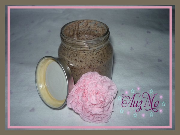 Состав:за основу детский крем,абрикосовое масло,персиковое масло,миндальное масло,молотый кофе,ЭМ жожоба и мяты.