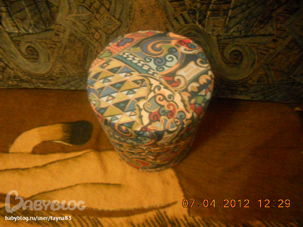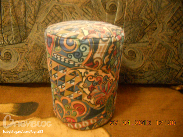 Шитье одежды, выкройки, ремонт одежды, шторы, швейные машины (уже приобретенные)Здраствуйте. Пишу сюда впервые, так как шить особо не умею. Так, что в школе научили. Увидела пуфик из пластиковых бутылок, захотелось сделати дочке. Сделала! Робота примитивная, но все же хочется узнать Ваше мнение.