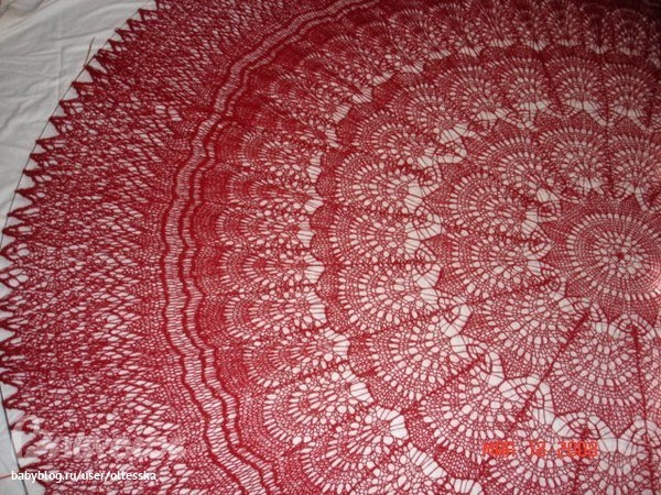 Хорошо, на ты :) у меня просто вообще треугольниками не получается.. получается ровная полоса каймы :D и мама уговорила ее еще довязать (я связала 2,5 раза с 19 по 78 ряд- диаметр за 2 метра) до конца круга (до 78 ряда). думаю попробую справиться с родной каймой... я там в том сообщении со схемой каймы вчера поменяла схему- думала ты ее еще не посмотрела- там не получается, а которая была первая широкая- она тож получается без треугольников и вот дырки в сетке не получаются почему-то :( (между шалью и основной каймой). может потому, что очень свободная вязка? у меня нитки кидмохер 220м на 25грамм, а спицы 5.
