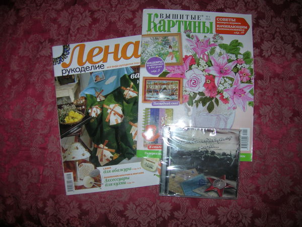 Еще очень интересные журнальчики с рукоделием (со схемками!)Для моего любимого - диск с песнями военных лет!!! Он очень любит и военные фильмы и песни, я уверена он будет рад! Спасибо!