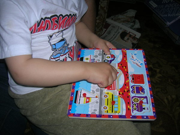 ), деревянные пазлы для малышей (ему понравилось, смотри, маман прикрылась газеткой)))))
