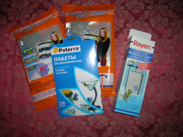 Ну а для меня - целый рай всего! Начну с очень интересной штучки - от которой пахла вся посылка))))) - это такой сосуд, который вешаешь рядом с батареей зимой, наливаешь водицы, масла и пахнет все вокруг. Вроде я правильно поняла! Для дома еще суперные вакуумные пакеты для одежды (теперь можно заныкать всю зимнюю одежду, ураааа), формочки для льда (никогда таких не видала).
