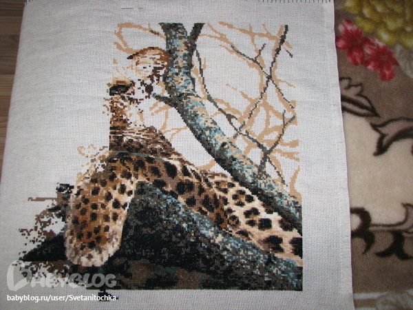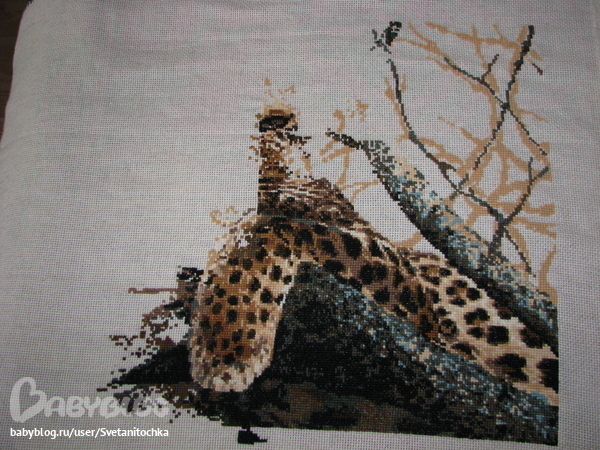 Привет, девочки!!! У моего леопарда начала проявляться морда лица!!! Ветки справа дошила.