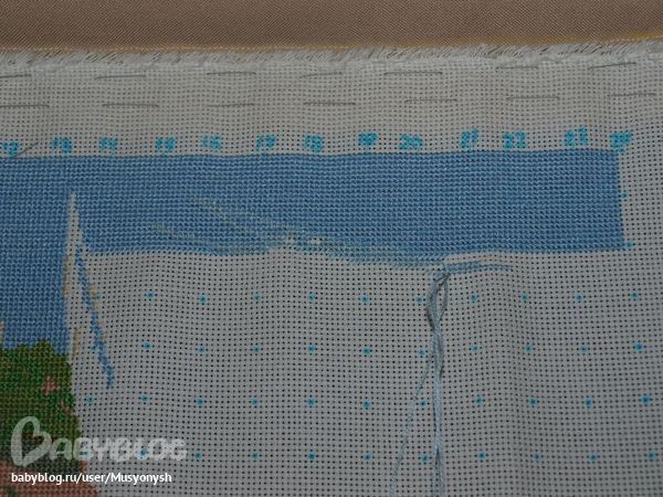 Привет, девочки! Принимайте и мой отчетик :) На прошедшей неделе ковыряла я небушко на своей картинке. С правой стороны его совсем не было, теперь есть столько: