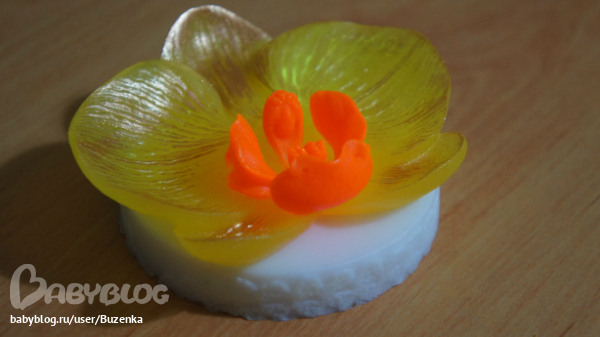использовала белую основу, красители - красный, желтый, и капля синего! и вот что получилось!