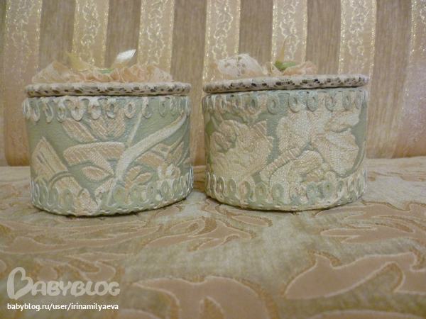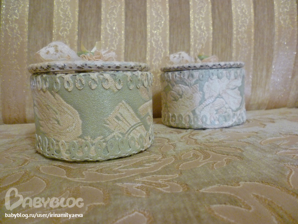 Класс!!нежные такие.Я сама люблю шкатулочки из бобинок.они такие милые получаются