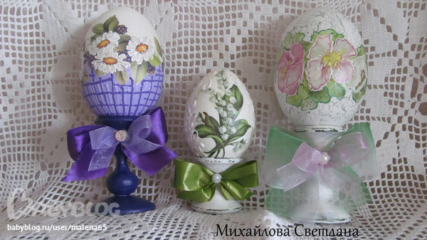 вот, согласна, с Катей насчет декора - бантики просто прелестные. Фиолетовое яйцо особенно понравилось!