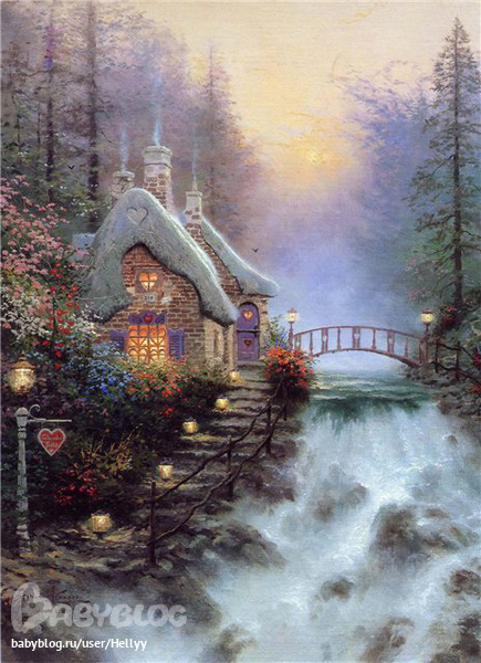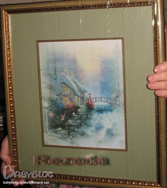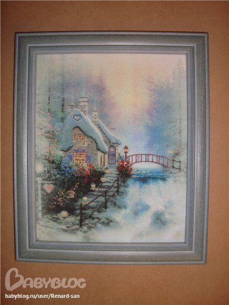 Я вот тоже давно смотрю на картины Кинкейда. И боюсь, что результат будет не таким как я ожидаю. Если вы вышиваете по набору, то в отшитом варианте ваша вышивка будет выглядеть так